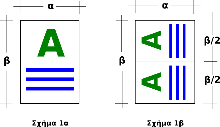 1ον. θα μικρύνει την σελίδα και θα μετατρέψει το πλάτος της αρχικής σελίδας από α σε β/2 για να χωρέσουν δύο σελίδες σε ένα Α4, το δε ύψος της αρχικής από β θα το μετατρέψει σε α. Να πως εξηγούνται οι παρατηρήσεις Ι και ΙΙΙ πάρα πάνω!